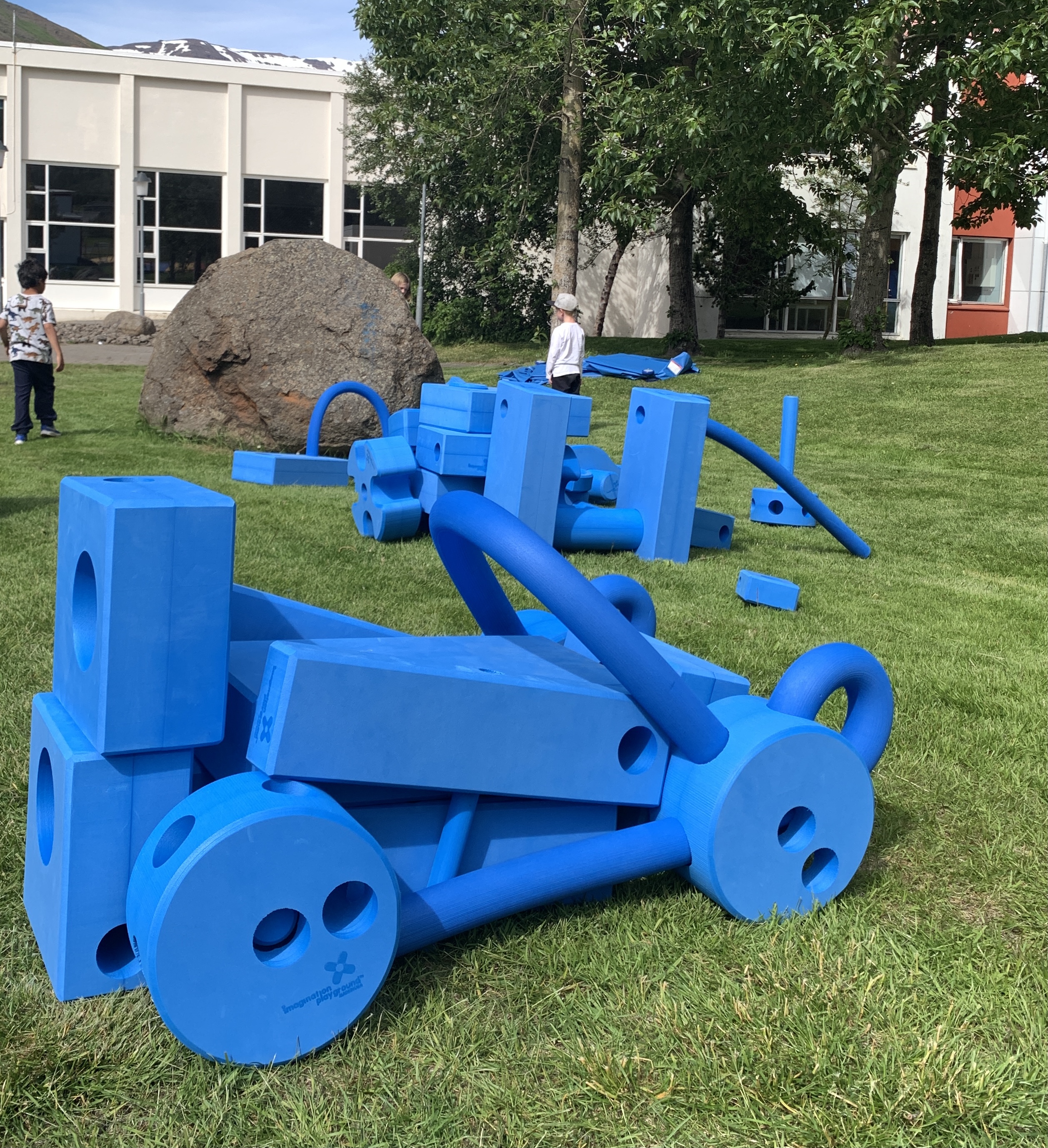 Einnig er fyrirhugað að taka þá út undir bert loft þegar tækifæri gefst til og setja upp óvænta leikvelli hér og þar um bæinn. Það var einmitt gert eina viku í júlí, í 20 stiga sumarblíðu, og líklegast komu um 50 börn að leika sér með þá á tæpum þremur klukkustundum, bæði börn úr bænum og ferðafólk. Ótrúlega gaman var að fylgjast með hvernig börnin bjuggu til mismunandi leiki, hús, rennibrautir, bíl og vopn í tölvuleik svo eitthvað sé nefnt.