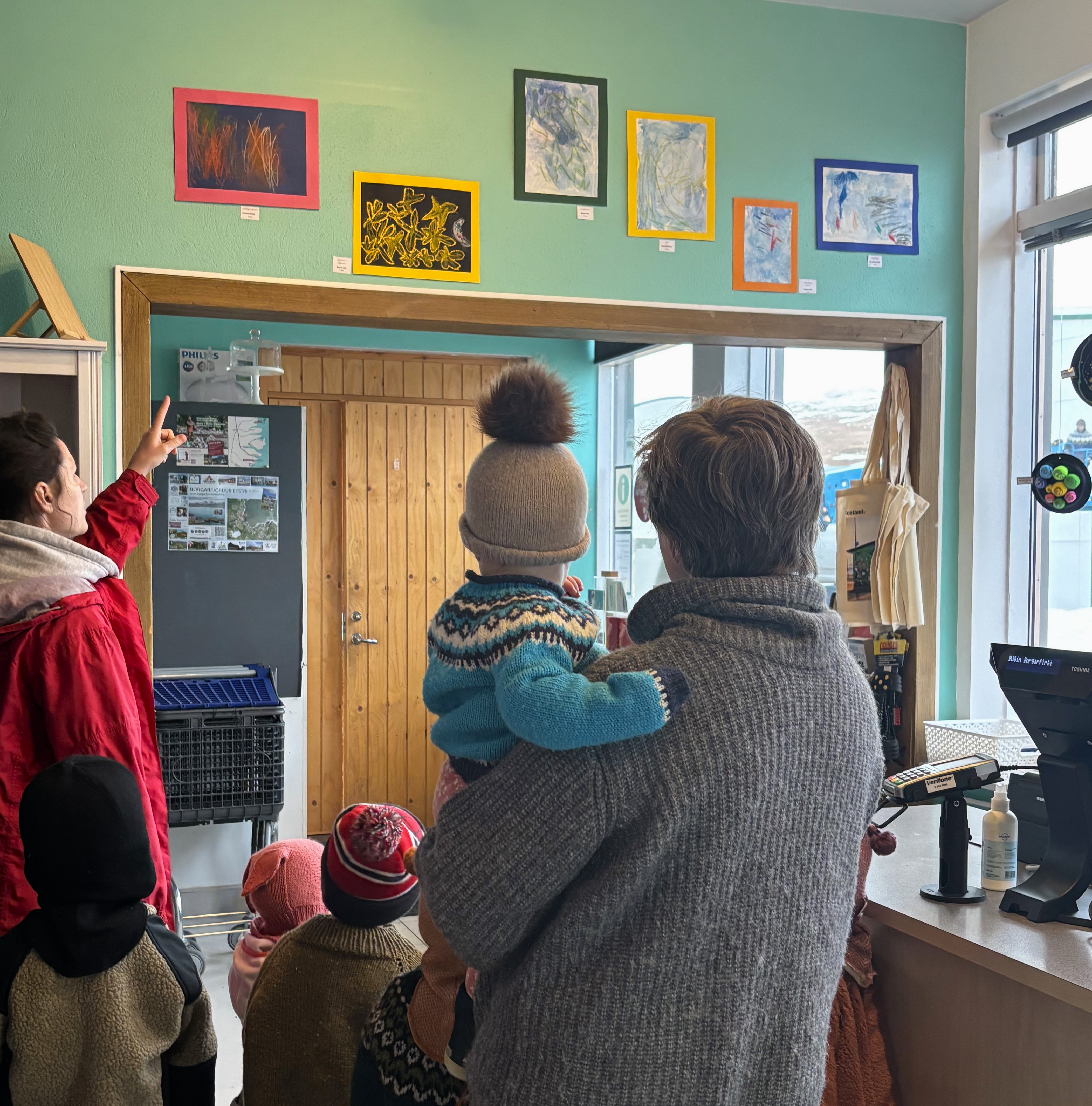 Að lokum sungu börnin tvö lög fyrir sveitarstjóra og starfsfólk skrifstofunnar og héldu svo út í daginn mett eftir safa, ávexti og kextilbúin að taka á móti foreldum og aðstandendum sem kíkja á leikskólann seinna í dag í kaffi og skúffuköku. Þá ætla krakkarnir að sýna þeim handverk sem þau hafa unnið og fara í val með þeim.