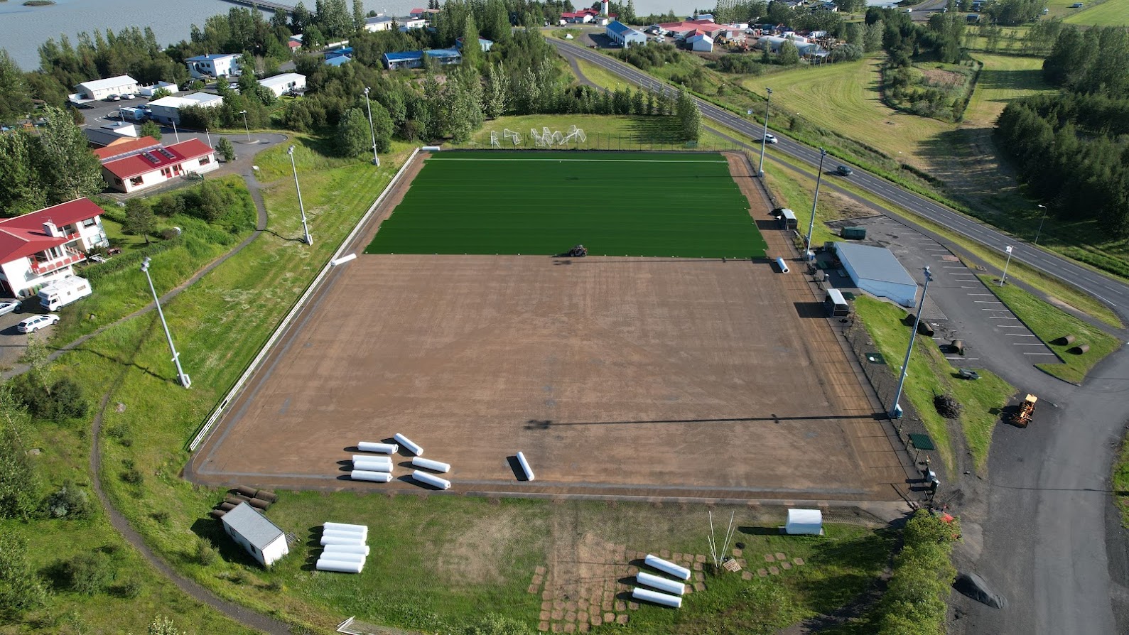 Í lok júlí kom flokkur manna á vegum Altis til að rúlla út nýja grasinu sem lítur mjög vel út og knattspyrnuiðkendur í Múlaþingi eru spennt að fá loksins að æfa og keppa á vellinum. Þá er verið að bæta alla aðkomu áhorfenda, gera ráðstafanir til að stýra betur umferð inn á völlinn og snyrta til í kringum hann.