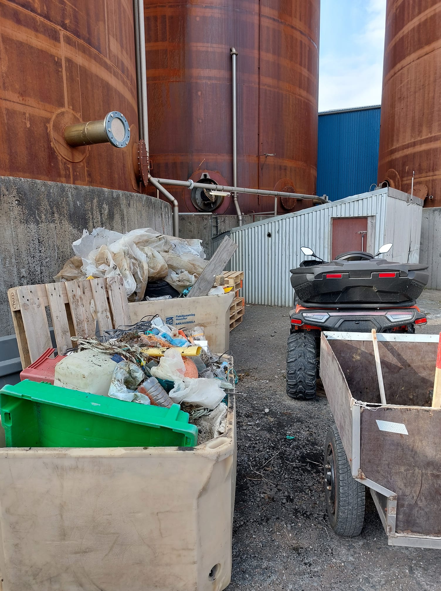 "Plast, málningarflyksur, frauðplast, flugeldarusl og steinull. Síðan fannst Neistatreyja sem rataði til eiganda. Einn plokkaði bara einn hlut sem var stórt flotholt sem híft var upp úr fjöru. Ein plokkaði í tvö 1000 L kör" segir Ólöf Vilbergsdóttir sem var ánægð með daginn og að honum loknum voru flestir plokkarar sem gæddu sér á grilluðum pylsum/pulsum og safa við hoppubelginn eftir vel unnin störf.