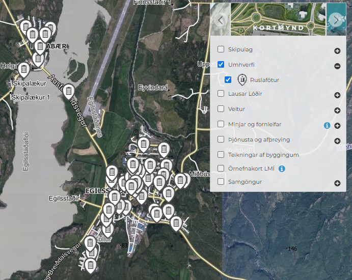 Á kortasjá sveitarfélagsins má sjá hvar ruslafötur eru staðsettar ef hakað er við „Umhverfi”. Íbúar eru hvattir til að nýta ábendingagáttina til að vekja athygli á stöðum þar sem vanta þykir ruslafötu eða ef ruslafötur eru yfirfullar.