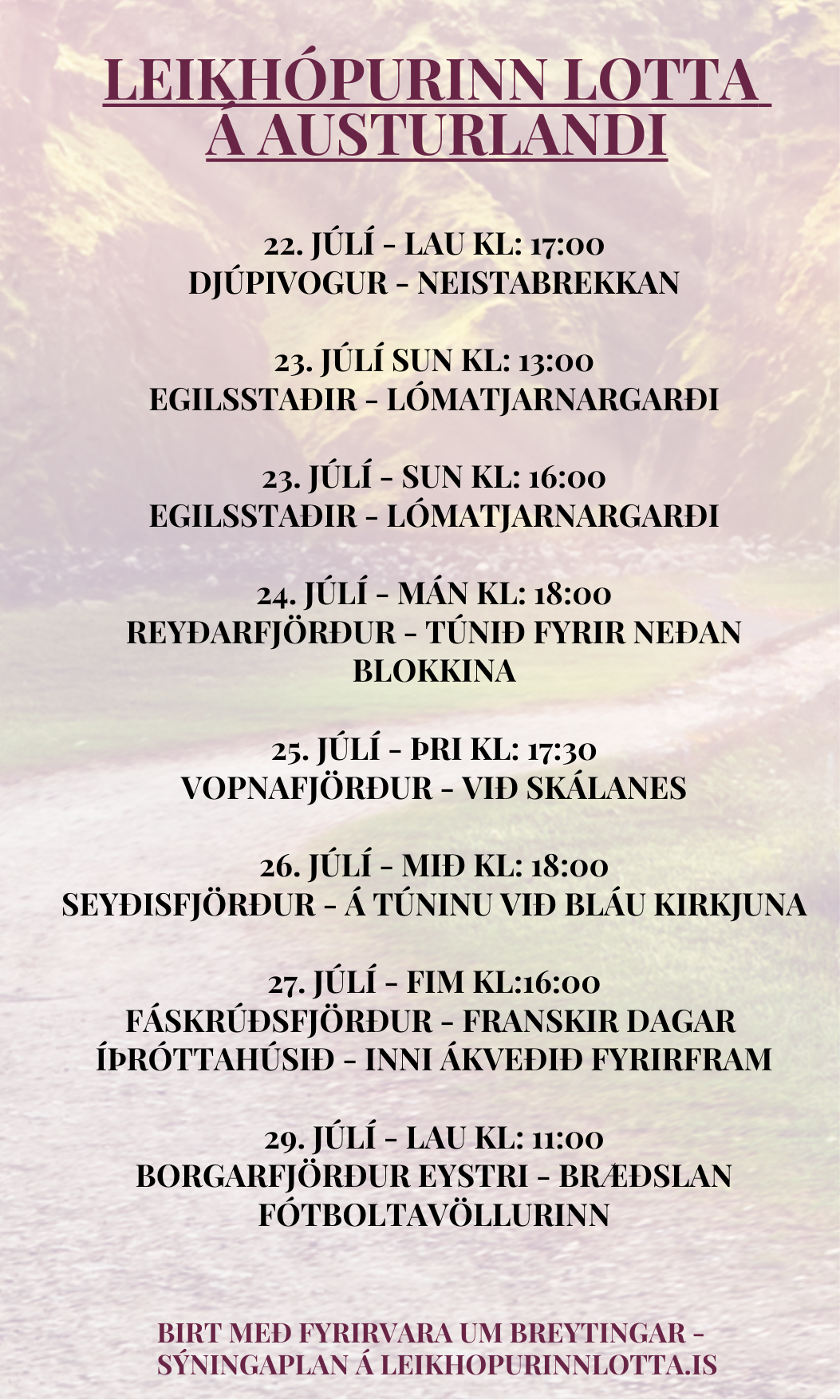 Sýningaplan fyrir allar sýningar má finna á www.leikhopurinnlotta.is.