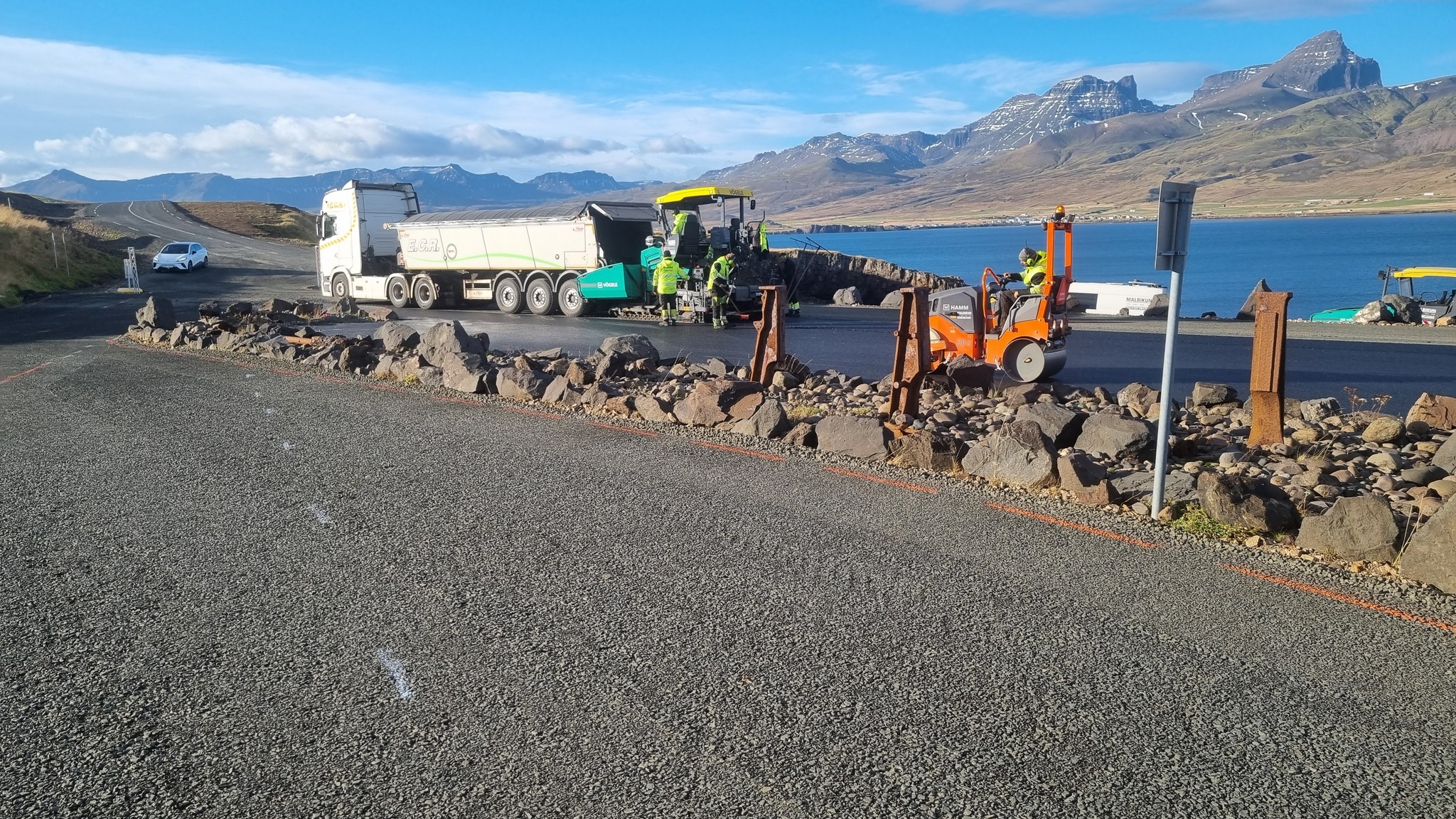 Í síðustu viku var bílastæðið ofan við Borgarfjarðarhöfn malbikað. Við höfnina er einn fjölsóttasti ferðamannastaður Austurlands, lundabyggðin í Hafnarhólma.
