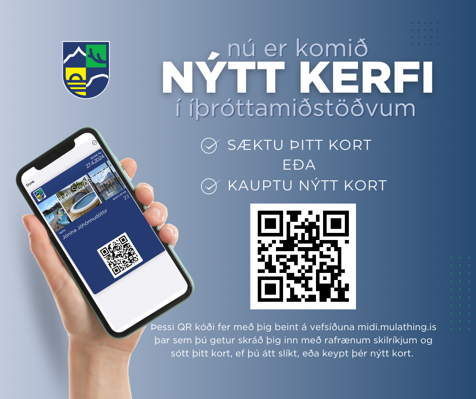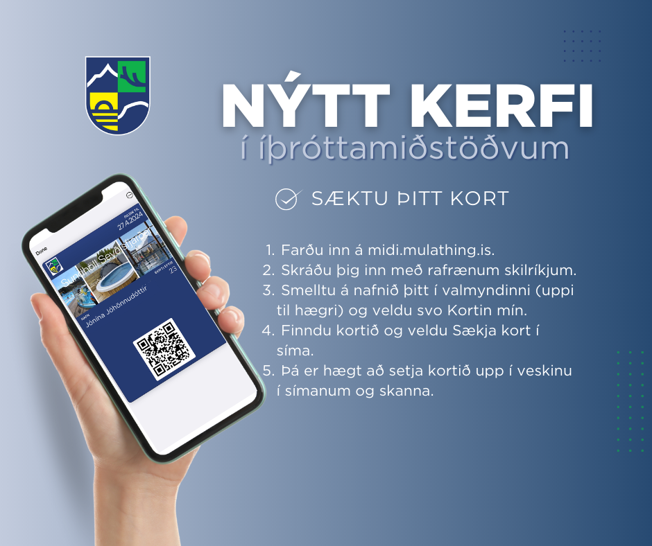 Þau sem eiga nú þegar kort af einhverju tagi, annað hvort í líkamsrækt eða sund, geta nú þegar farið inn á vefsíðuna midi.mulathing.is, skráð sig inn með rafrænum skilríkjum og sótt sitt kort í símann.