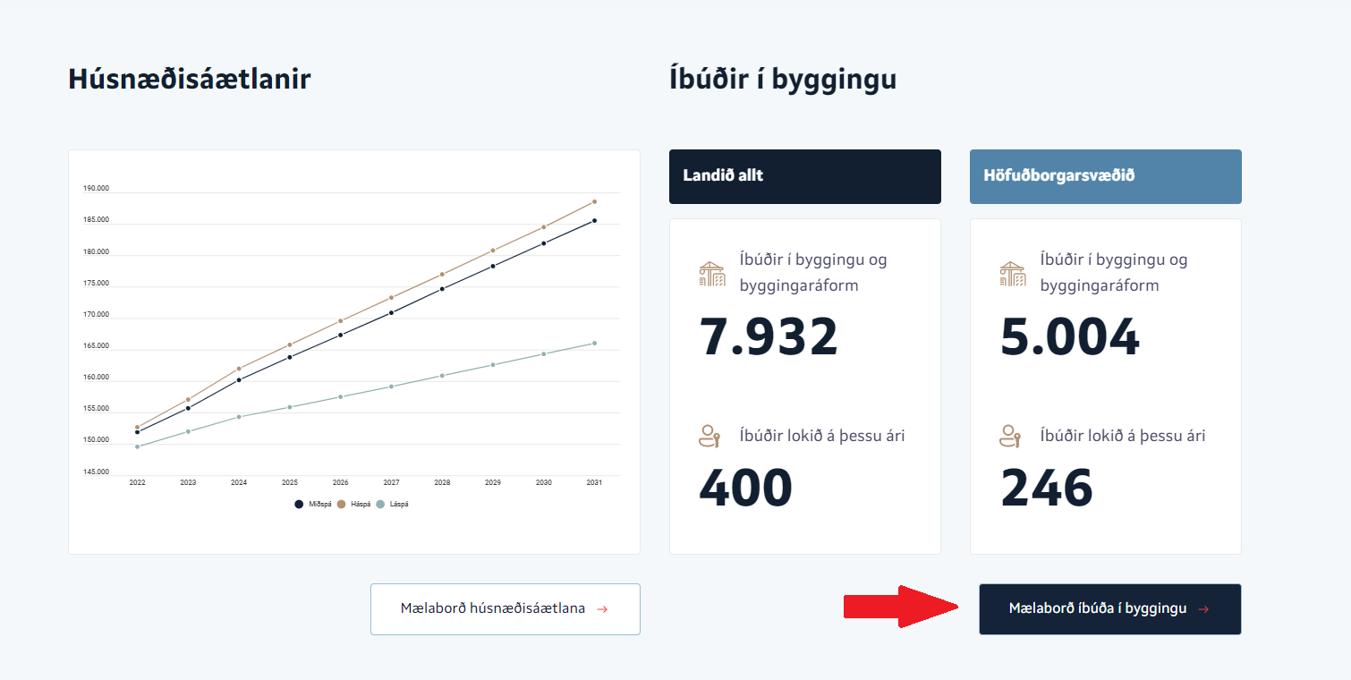 Á forsíðu HMS.is er hægt að kynna sér stöðu íbúðarbyggingar í okkar sveitarfélagi með því að velja mælaborð íbúða í byggingu.