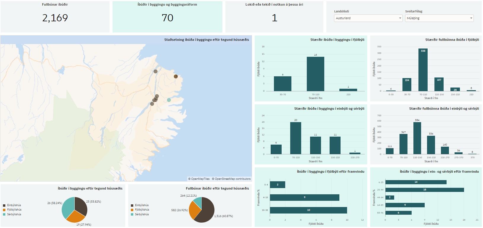 Nú í byrjun árs 2023 eru í byggingu í Múlaþingi 68 íbúðareiningar og um 20 íbúðareiningar í leyfisferli. Húsnæðis og mannvirkjastofnun hefur tekið í notkun nýtt mælaborð þar sem hægt er að nálgast upplýsingar um mannvirki sem eru í byggingu á öllu landinu.