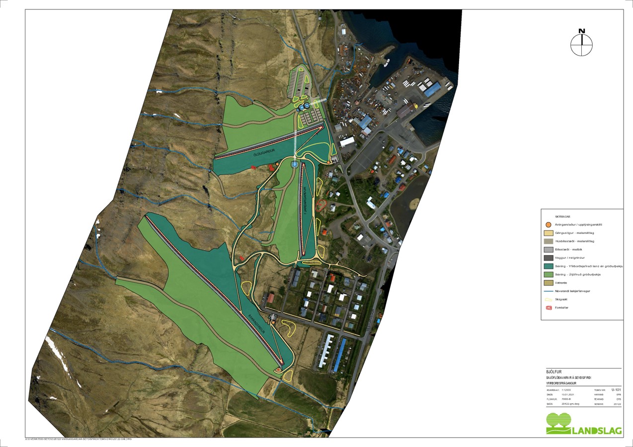 Verktaki mun hafa aðstöðu og vinnubúðir á gamla malarvellinum við Langatanga.