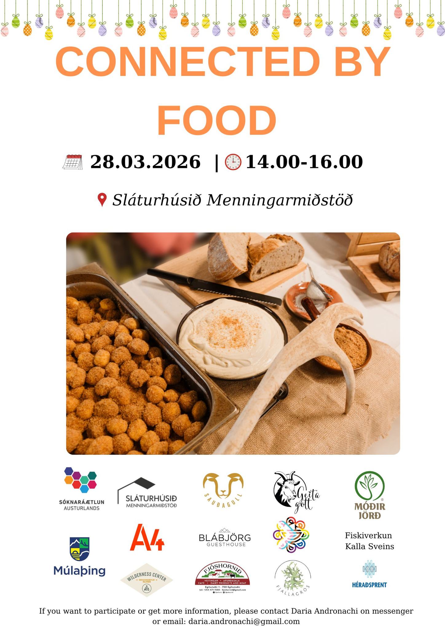 Þriðja árið í röð er viðburðurinn Connected by Food haldin í Sláturhúsinu á Egilsstöðum. Um er að ræða viðburð sem helgaður er því að fagna ríkulegri matararfleifð fólksins sem býr á Austurlandi.