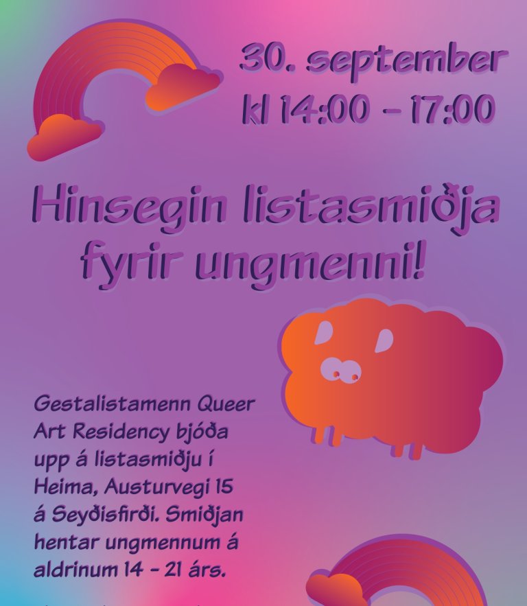 This year, 2023, the artists of the residency will host workshops for queer youth over the East fjords in the following weeks. A safe space for all. 🏳️🌈🏳️⚧️🏳️🌈