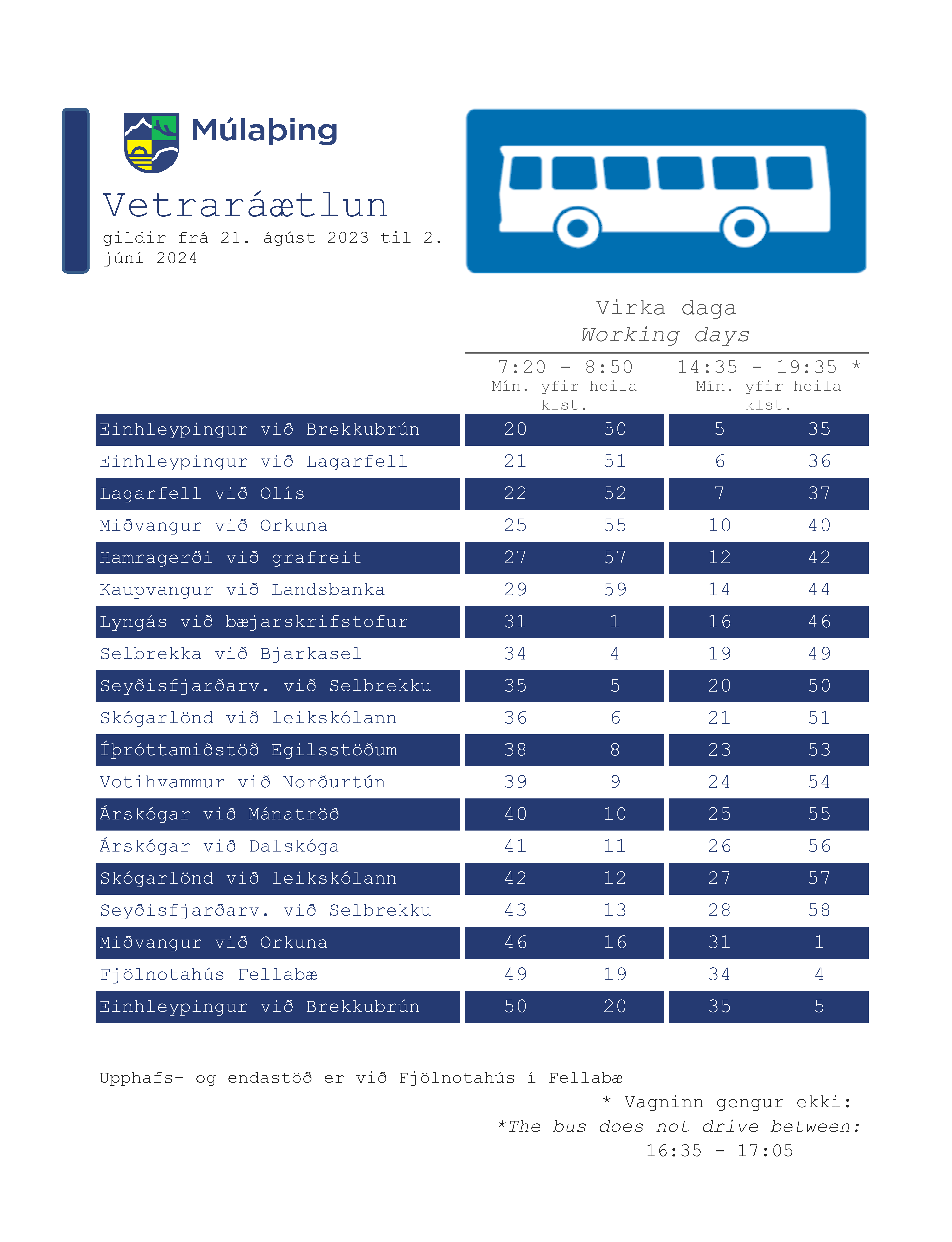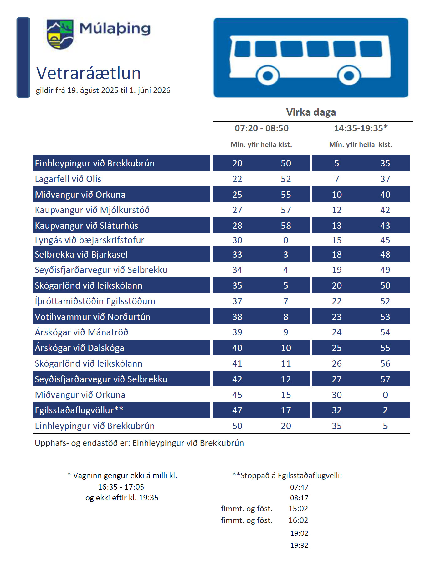 Allar ferðir almenningssamgangna á vegum Múlaþings eru gjaldfrjálsar.